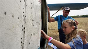 5 сентября участники медиафестиваля «Дитятко» традиционно посетили аэродром «Коротич». Для детей провел экскурсию начальник Харьковского аэроклуба Сергей Филатов, который рассказал об авиационных достижениях харьковских летчиков и парашютистов, особенностях авиационной техники в музее под открытым небом и проектах Харьковского аэроклуба.