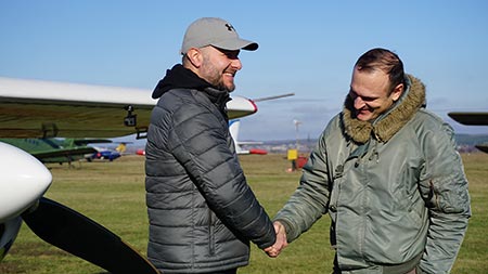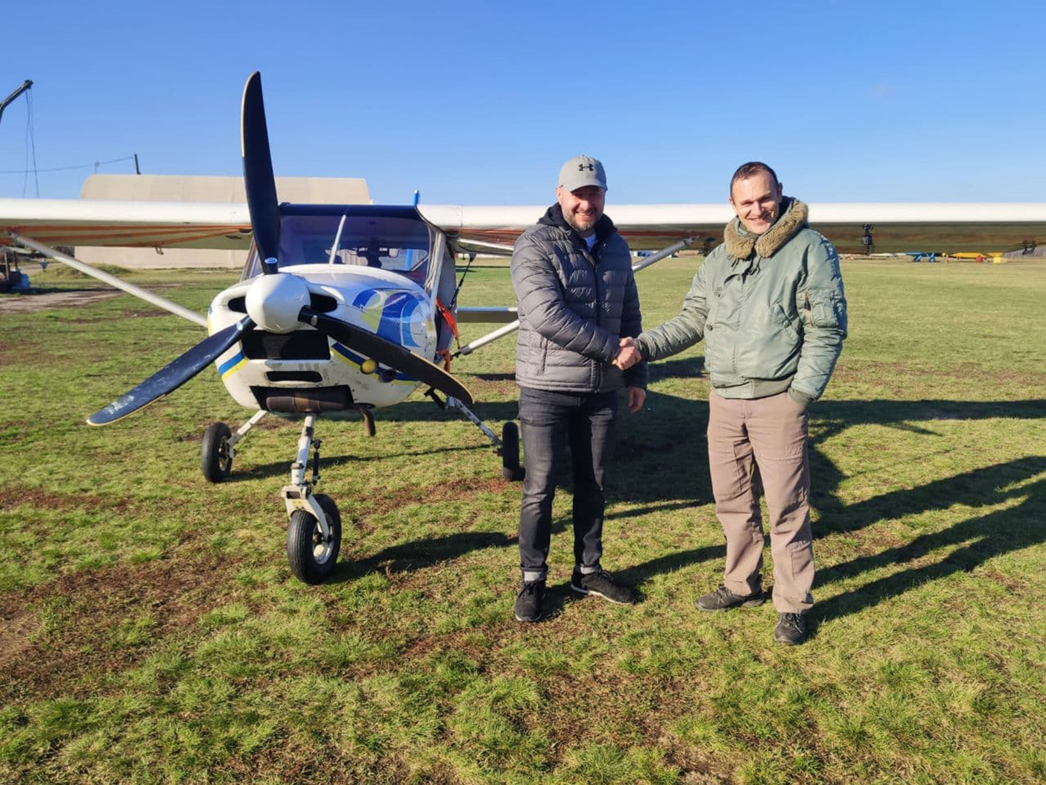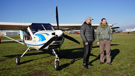 Начинающий пилот успешно окончил вывозную программу за 15 летных часов. Сегодня утром курсант с позывным «36» и его летный инструктор Виктор Туголуков выполнили три полета по кругу для ознакомления с погодными условиями, после чего главный летный инструктор-экзаменатор Харьковского аэроклуба Сергей Комин слетал с Дмитрием проверочные полеты по кругу на допуск. Дмитрий Красников в самостоятельном полете по кругу показал высокий уровень подготовки и хорошо справился с заданием.