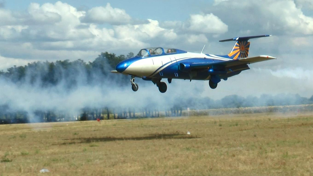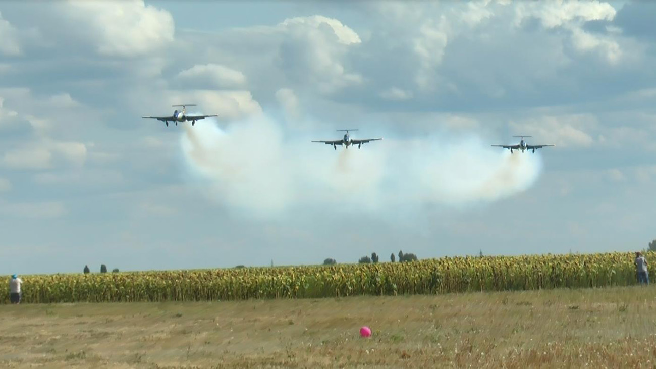 Вылет на высший пилотаж сделал Сергей Филатов на Л-29. Также «элки» выступили тройкой.