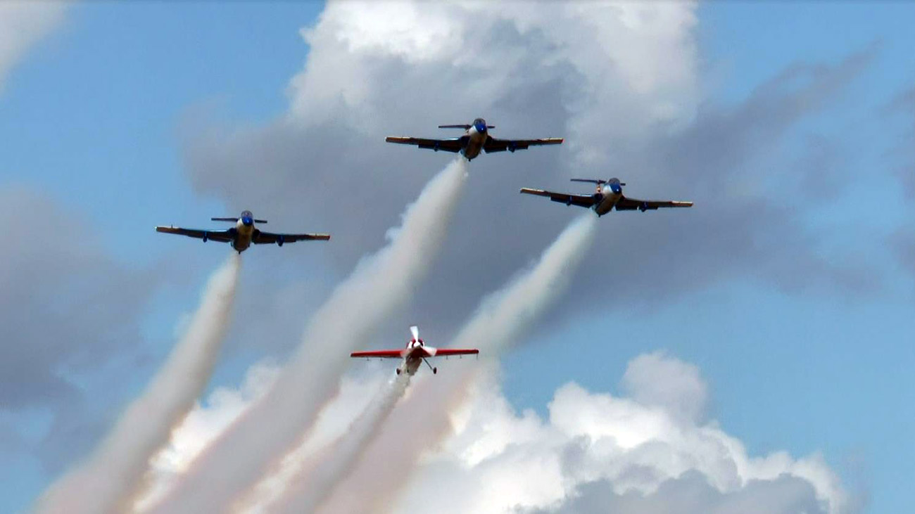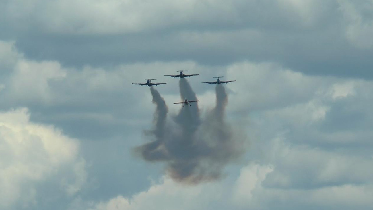 В ходе программы зрители смогли увидеть в небе около десятка различных спортивных винтовых и реактивных самолетов и вертолетов – Л-410, Як-52, Автожир и другая техника аэроклуба «Майское».