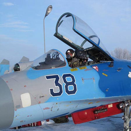Винищувач з бортовим номером 70 належав 831 бригаді тактичної авіації, дислокованої у Миргороді Полтавської області. Командував екіпажем льотчик 1-го класу, заступник глави повітряного командування «Схід», 46-річний полковник Іван Петренко. У задній кабіні перебував військовий пілот ВПС США і Національної повітряної гвардії Каліфорнії, 44-річний підполковник Сет Нерінг «Джетро». Це був ознайомчий виліт.