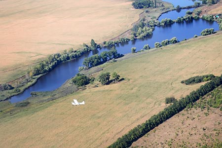 - Ознайомчі польоти та учбово-тренувальні на різних типах авіатехніки;