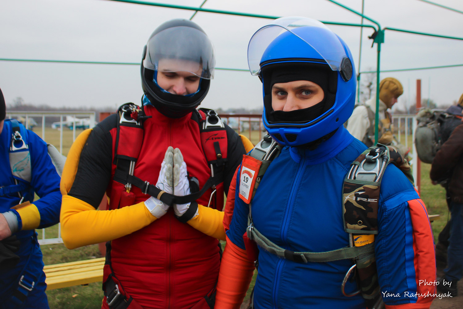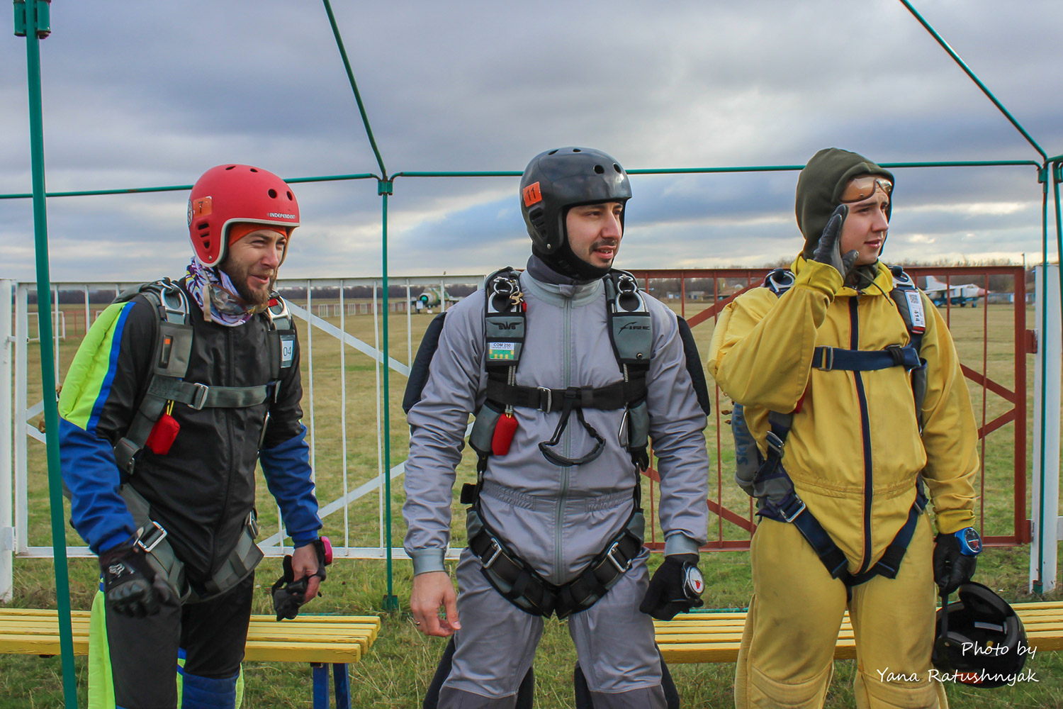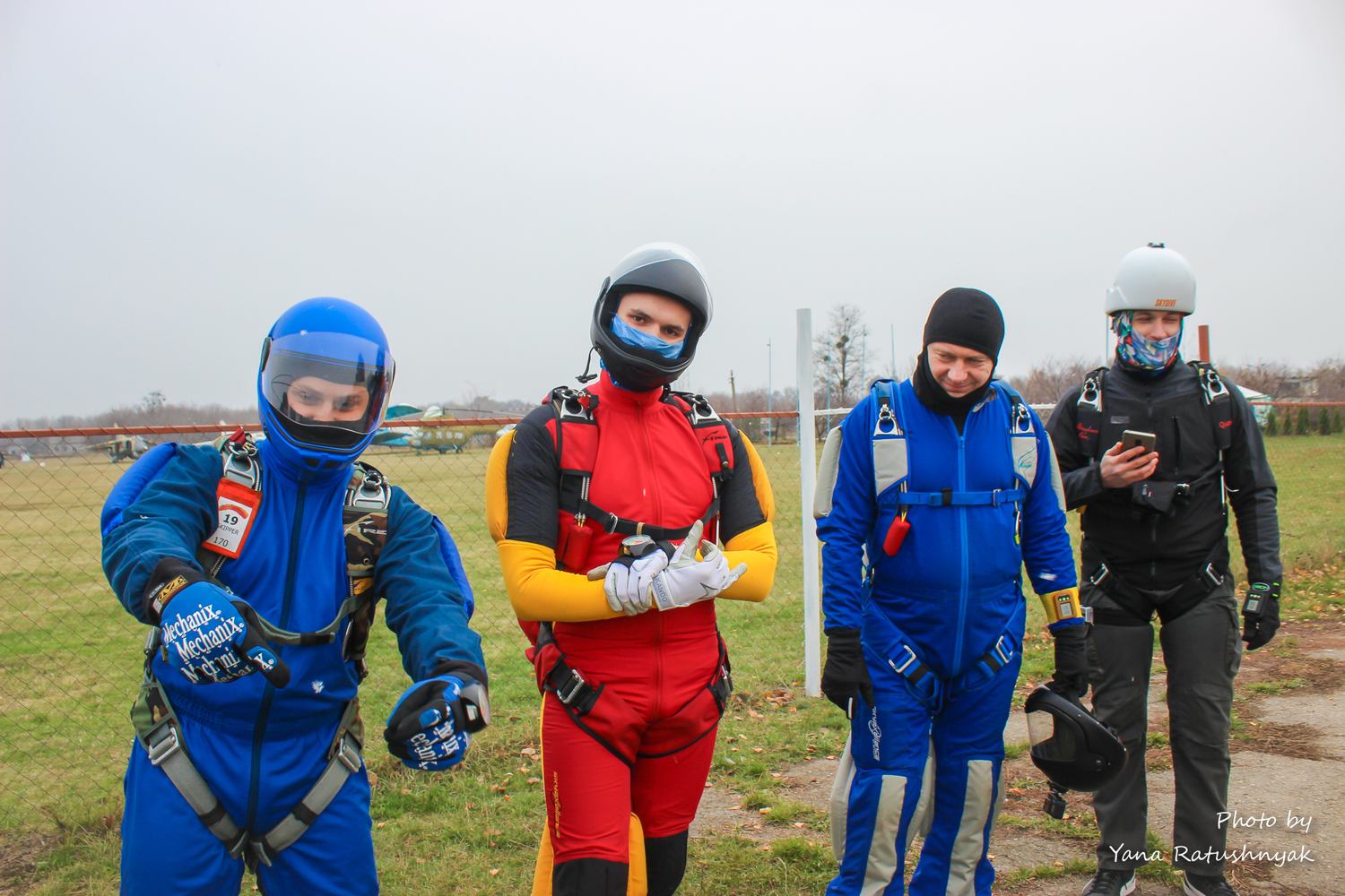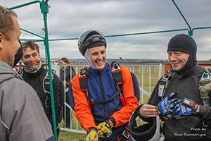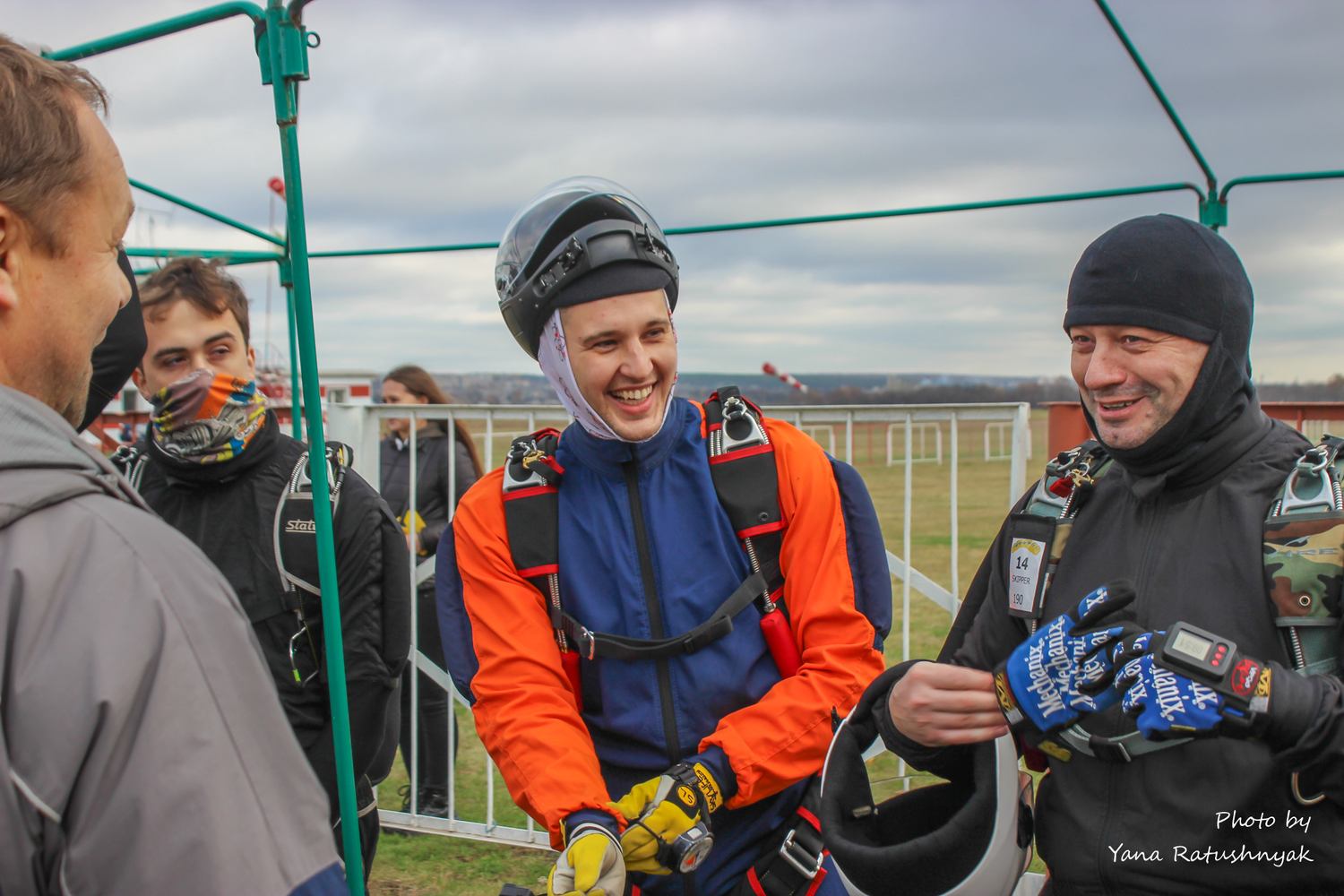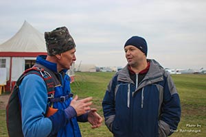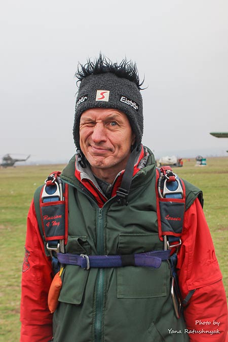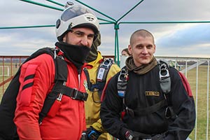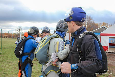 Для комфортного перебування на аеродромі та виконання стрибків вам знадобиться одяг, який забезпечить температурну ізоляцію, можливість випускати назовні вологу, що накопичилася всередині, захист від вітру, а головне - не буде сковувати рухи. Спортивні рукавички на холодний сезон обирайте такі, щоб під них можна було надіти ще одні, більш тонкі. Шолом, - щоб можна було швидко відкрити візор, який може запотіти або обмерзнути. Під нього - балаклаву.