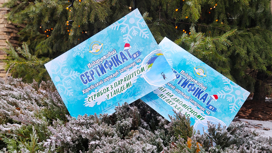 Новорічна акція «HOLIDAYS» від Харківського аероклубу триває! До 7 січня 2021 роки ви можете придбати подарункові сертифікати до свят за цінами 2020 року. Якщо ви ще не вирішили, як здивувати і порадувати близьких напередодні нового року, - ми придумали все за вас! Акційні святкові сертифікати на парашутні стрибки та ознайомчі польоти на аеродромі «Коротич» будуть дійсні до 01.06.2021 р, а сертифікати на навчання курсу теорії PPL (A) - протягом усього року. Кількість сертифікатів обмежена!.