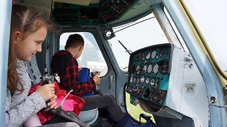 Екскурсія для організованої групи включає відвідування музею авіації під відкритим небом, діючої стоянки авіатехніки на льотному полі, яка налічує понад 30 типів літаків і вертольотів. А також відвідування двох салонів літальних апаратів - всередині кабін Ан-2 та Мі-2 ви можете відчути себе справжнім пілотом! Дізнатися, як влаштована техніка, зробити яскраві знімки.