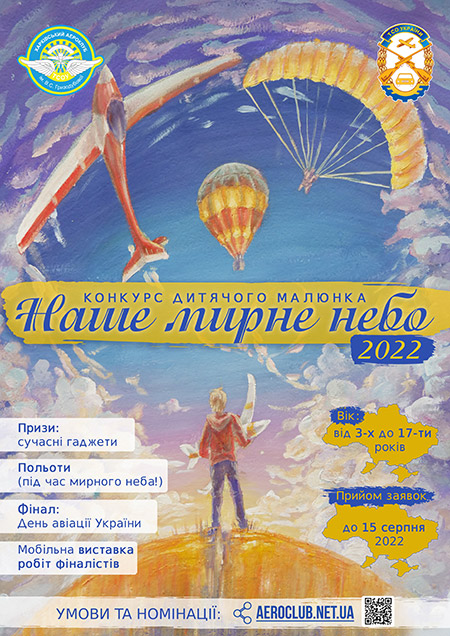 Харківський аероклуб відновлює конкурс дитячого малюнка «Наше мирне небо». Проект проводився з 2016-2018 рік. У 2022 році його актуальність постала з новою силою. Сьогодні оргкомітет конкурсу «Наше мирне небо» запрошує усіх бажаючих дітей до творчості та візуалізації нової картини миру, до якого ми усі прагнемо. Також ми запрошуємо усіх небайдужих до підтримки проекту, запрошуємо авіаційні організації Європи і світу долучитися до проведення фіналу конкурсу – ви можете запровадити власну номінацію, запропонувати переможцям польоти або екскурсії у ваших аероклубах, поки наші вимушено призупинили свою роботу.